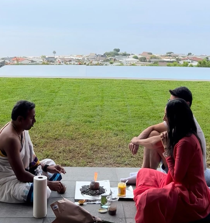 She then added, “As a real estate developer myself, I believe every property has a history that we may or may not know about, and every home carries the energy that the current owner brings to it. I am Hindu, and it’s customary to do a blessing and prayer anytime you buy a new home. We were so lucky to have our Panditji from Arizona come to the house to do the blessing.”
